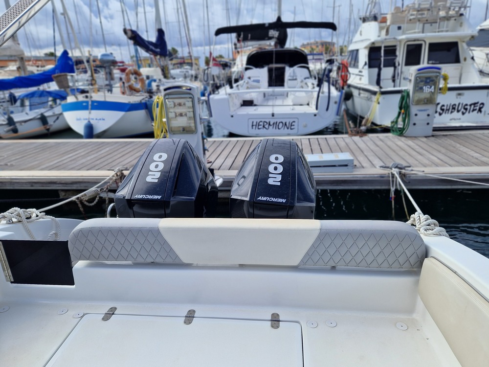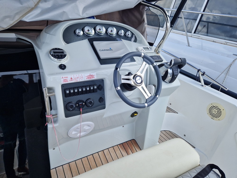 Divertente di giorno con una posizione della timoneria ben protetta dall’ampio parabrezza, si trasforma in un comodo “camper” di notte con due zone open space : un letto matrimoniale disposto a prua ed un letto singolo a poppa sotto la postazione di guida.