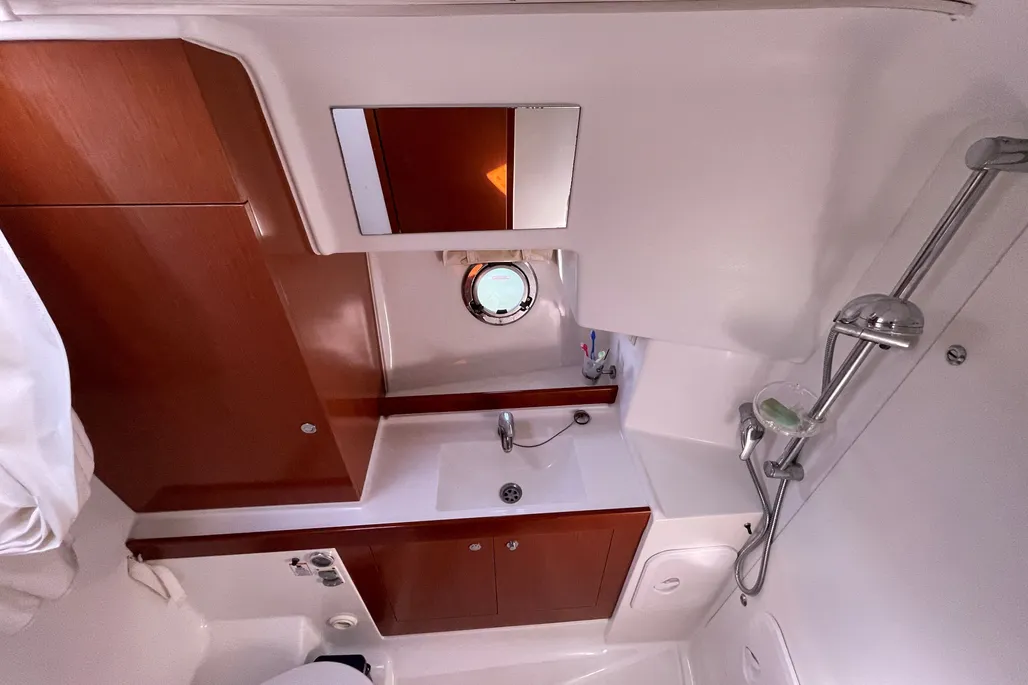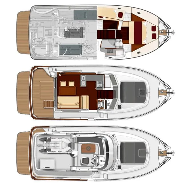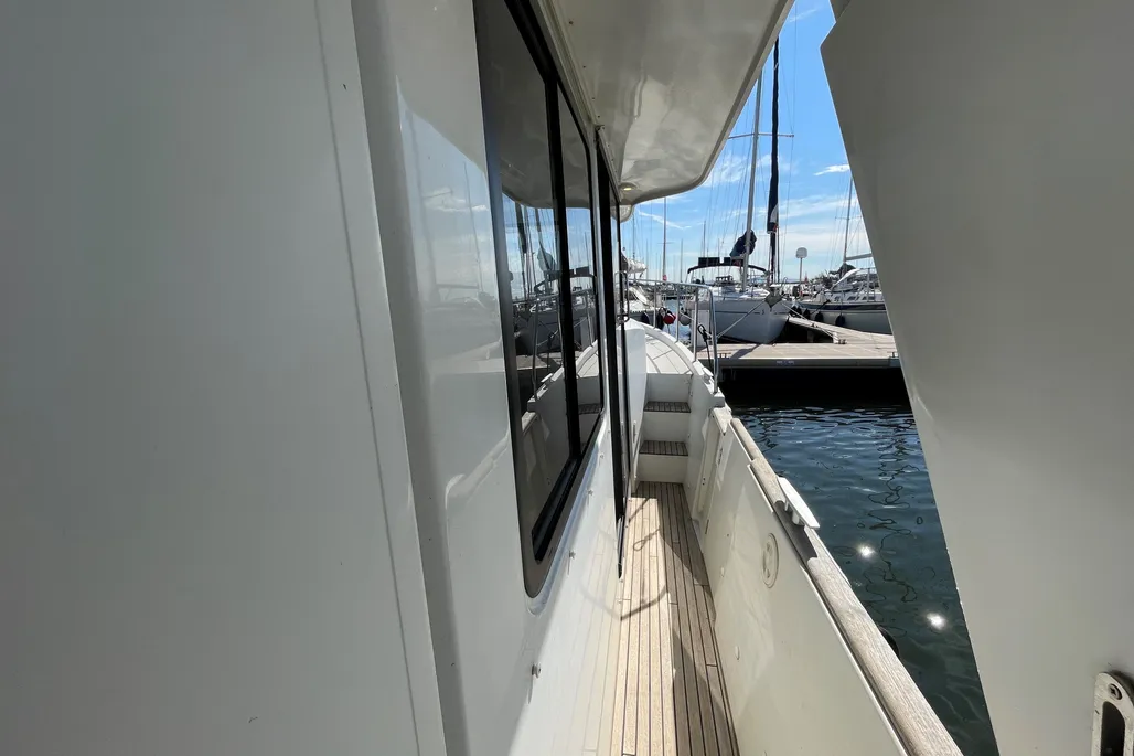Motore Cummins , ultima revisione dicembre 2024, comandi di propulsione di prua e di poppa Maxpower, Flaps di compensazione Lenco. Batterie AGM : 1 da 120 Ah per bow thruster, 1 da 120 Ah per stern thruster, 6 da 50 Ah per i servizi , pannelli solari da 100 W, inverter da 220 Volt.